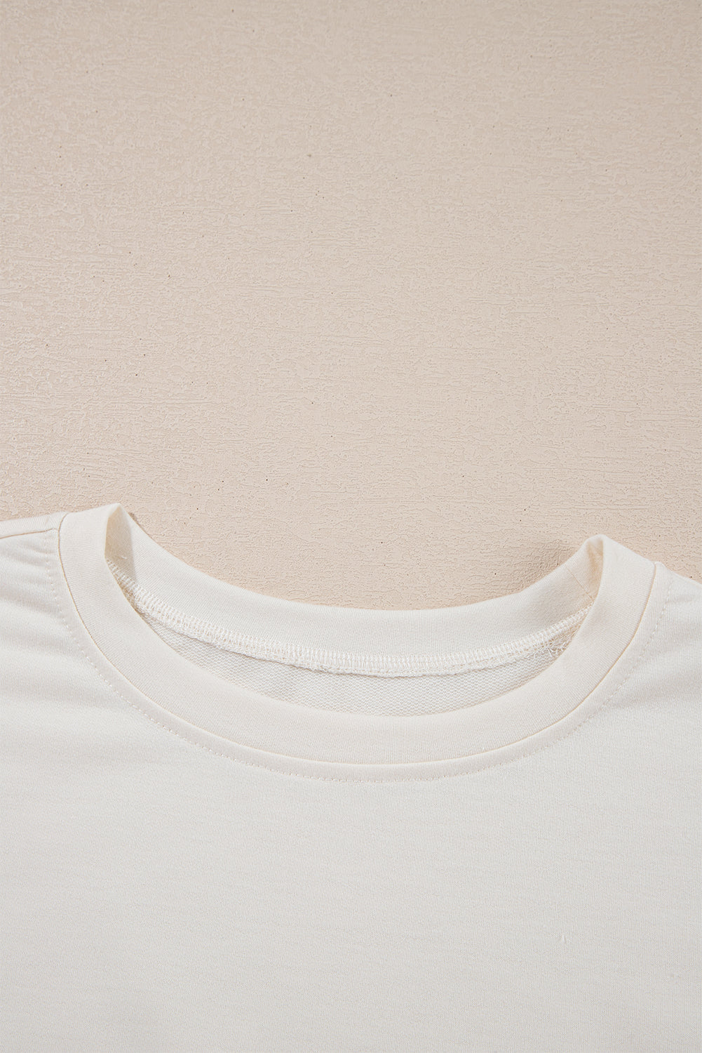 Beige 2pcs Cropped Tee and Ruffle High Waist Skort Set