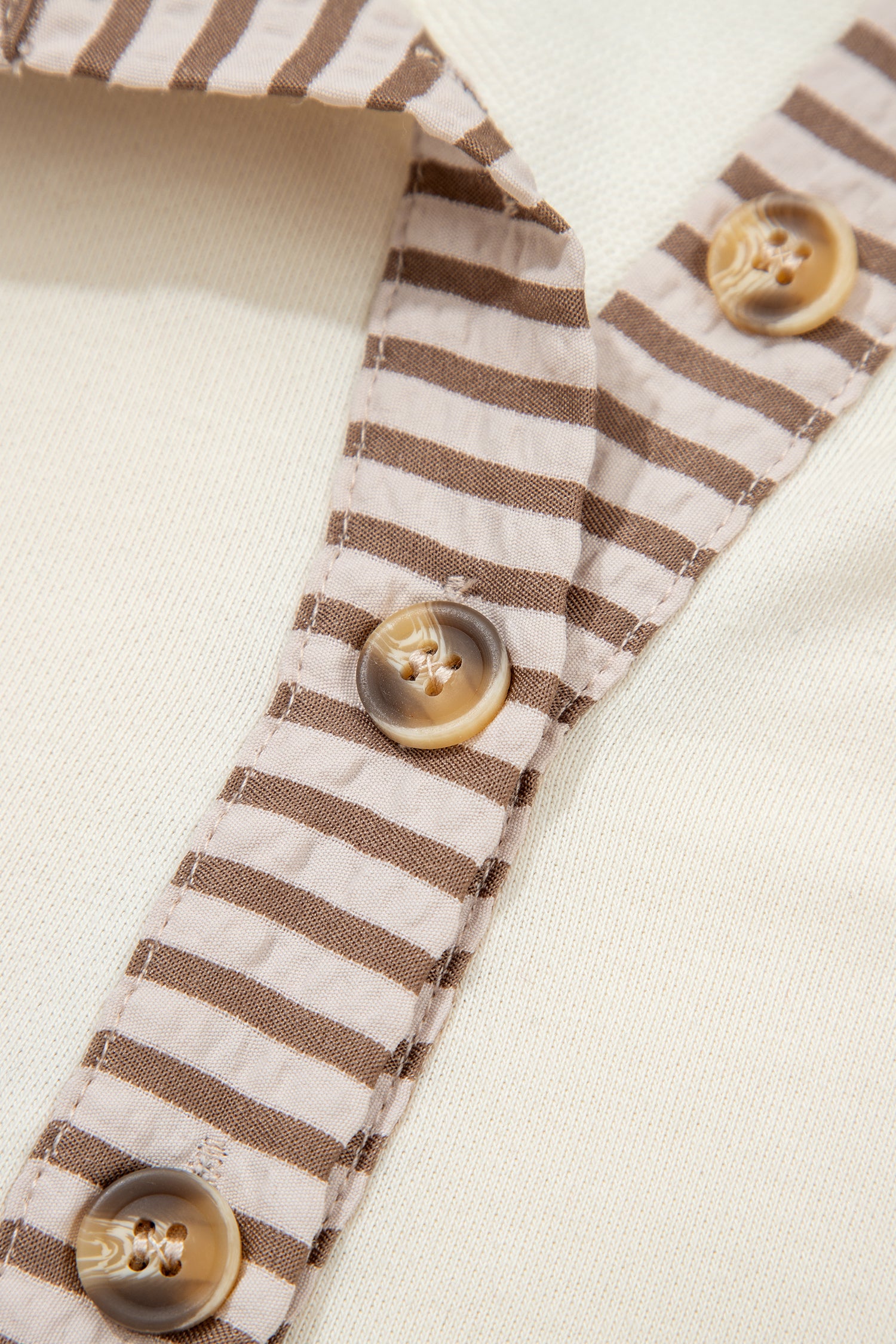 Khaki Stripe Plus Size Color Block Patchwork Half Button Long Sleeve Peplum Blouse