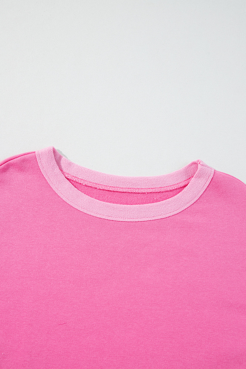 Sachet Pink High Low Patchwork Long Sleeve Top and Shorts Set