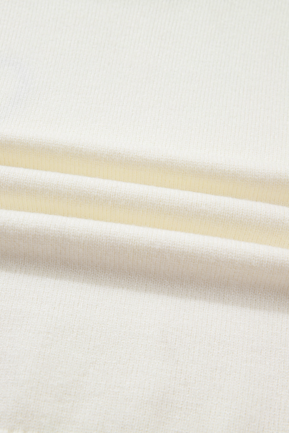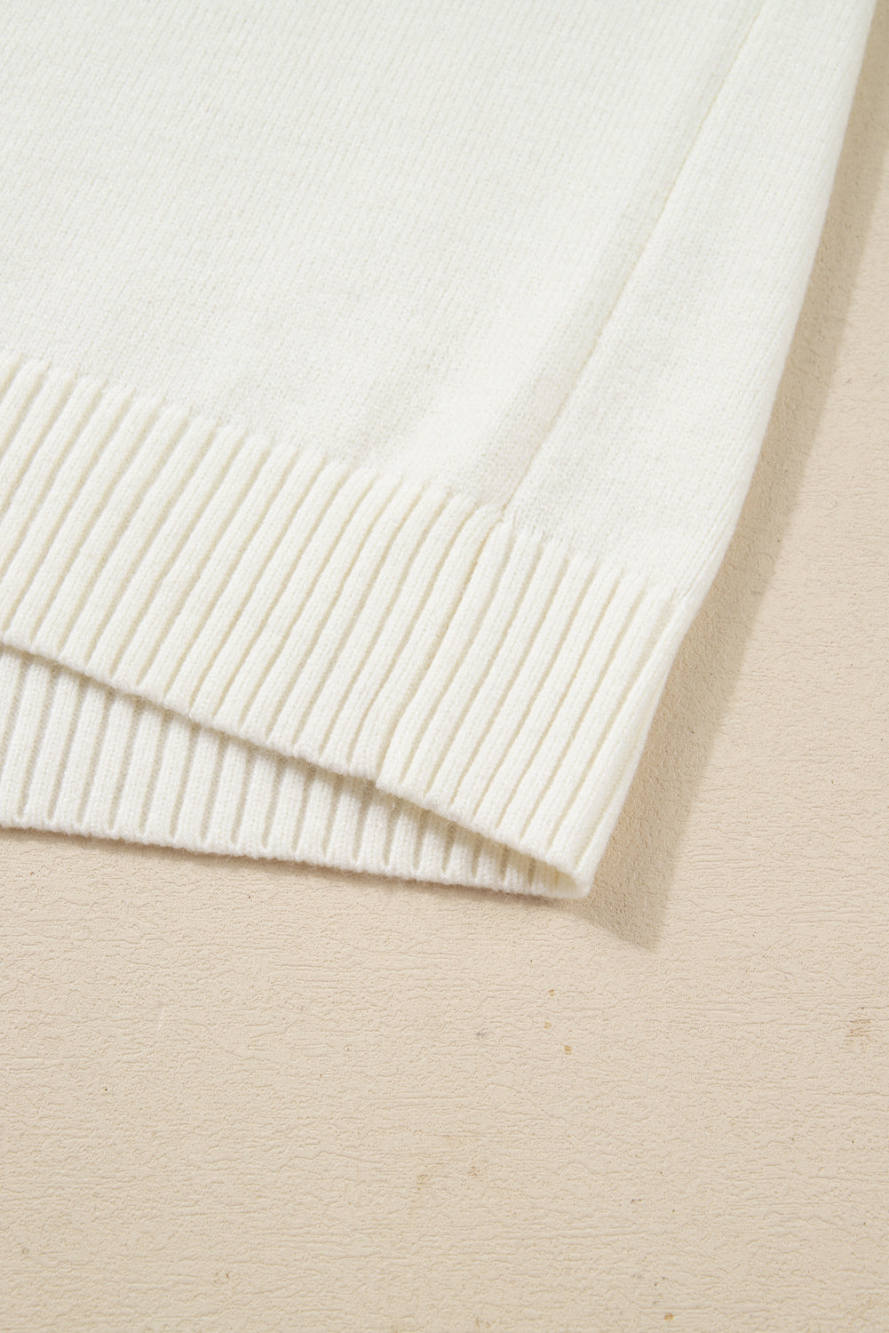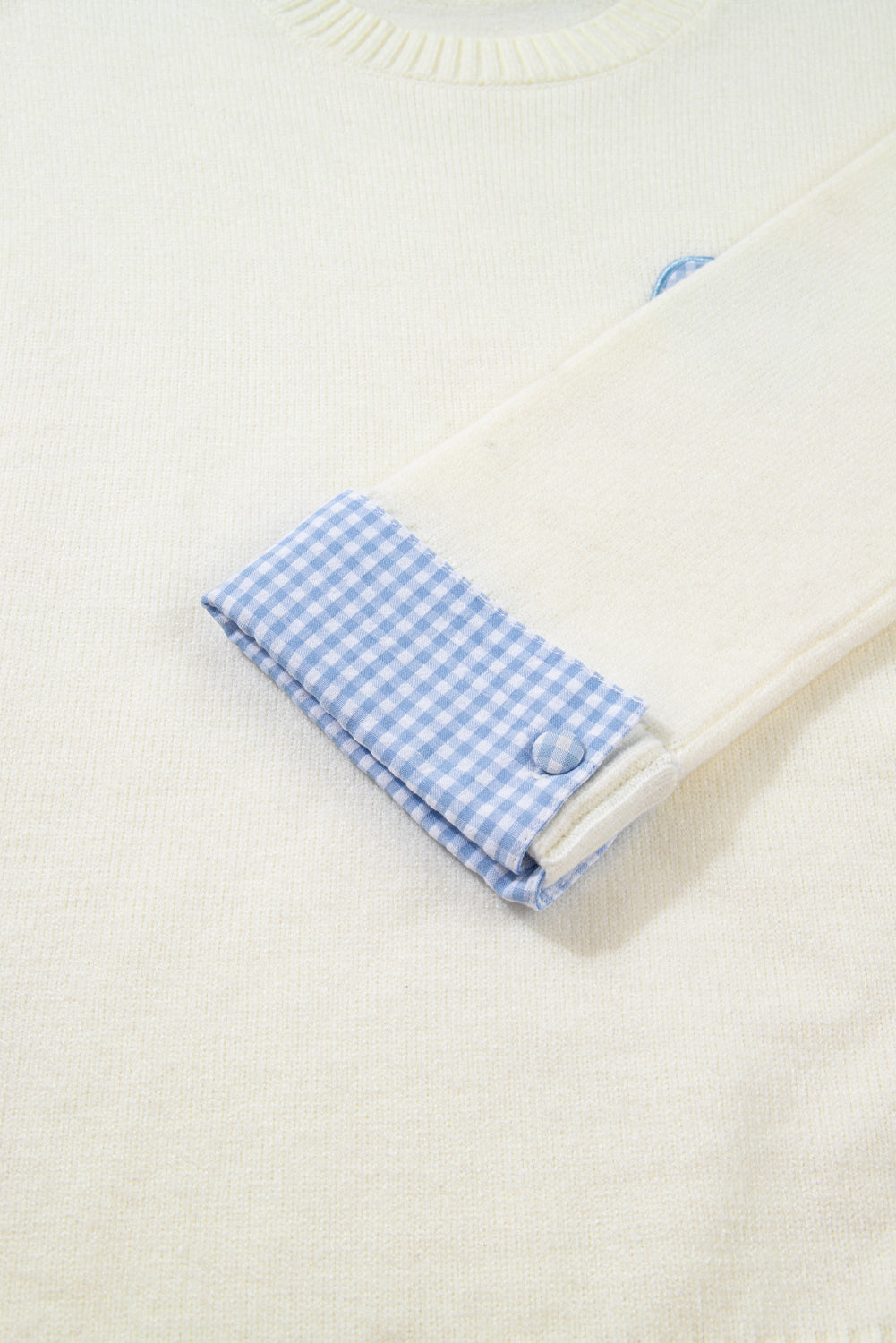 White Plaid Heart Embroidered Cuffed Drop Shoulder Crew Neck Sweater